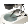 Levenhuk 3ST снабжен двумя встроенными подсветками (верхней и нижней), которые позволяют использовать микроскоп при любом уровне освещенности. Галогенные лампы очень экономичны в использовании и прослужат без замены долгое время. Для максимального удобства при исследовании, можно развернуть предметный столик микроскопа белой или черной стороной вверх. Кроме того, предметный столик оборудован специальными зажимами для надежной фиксации микропрепарата.