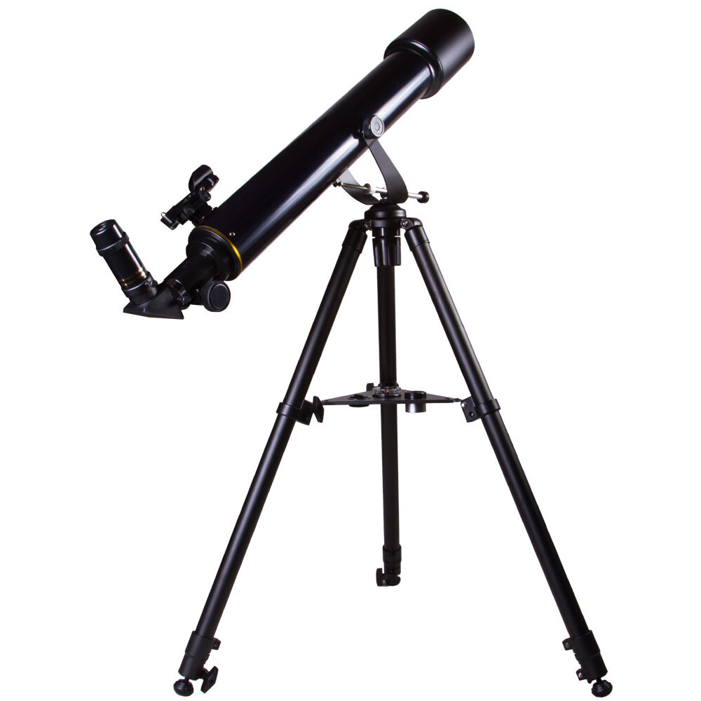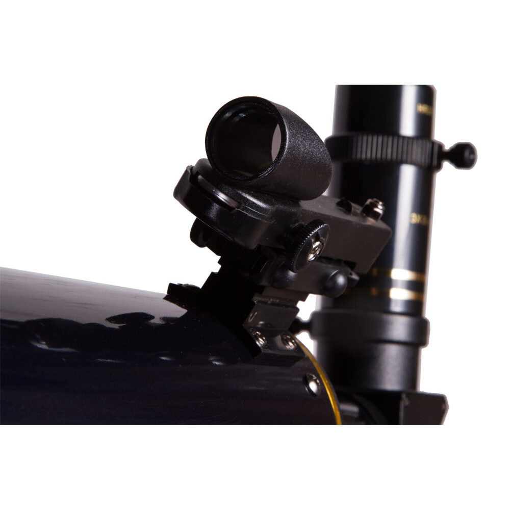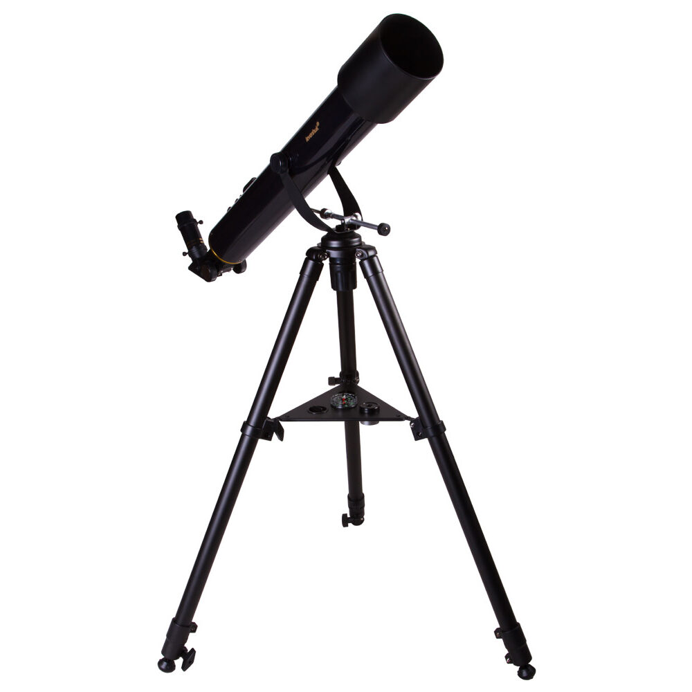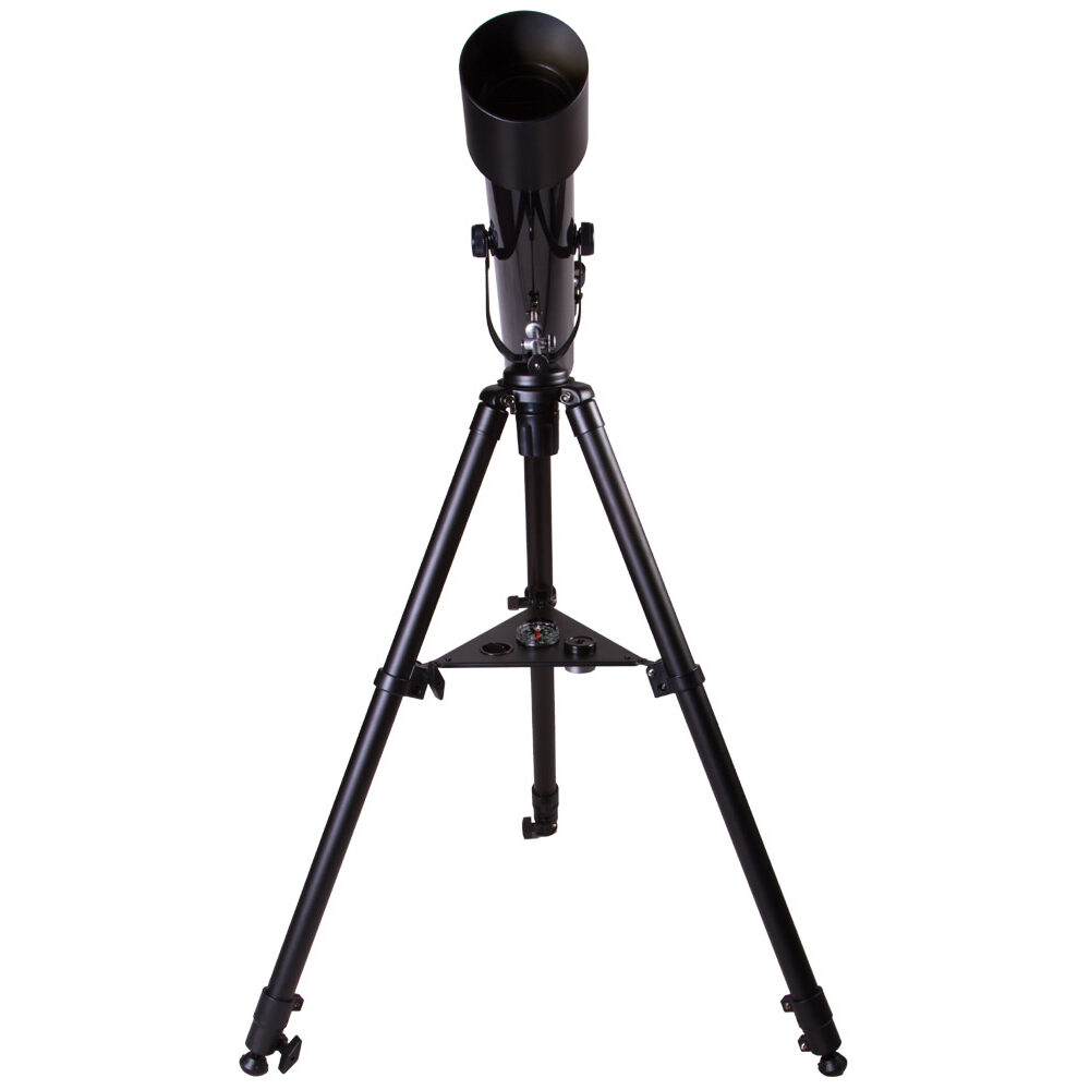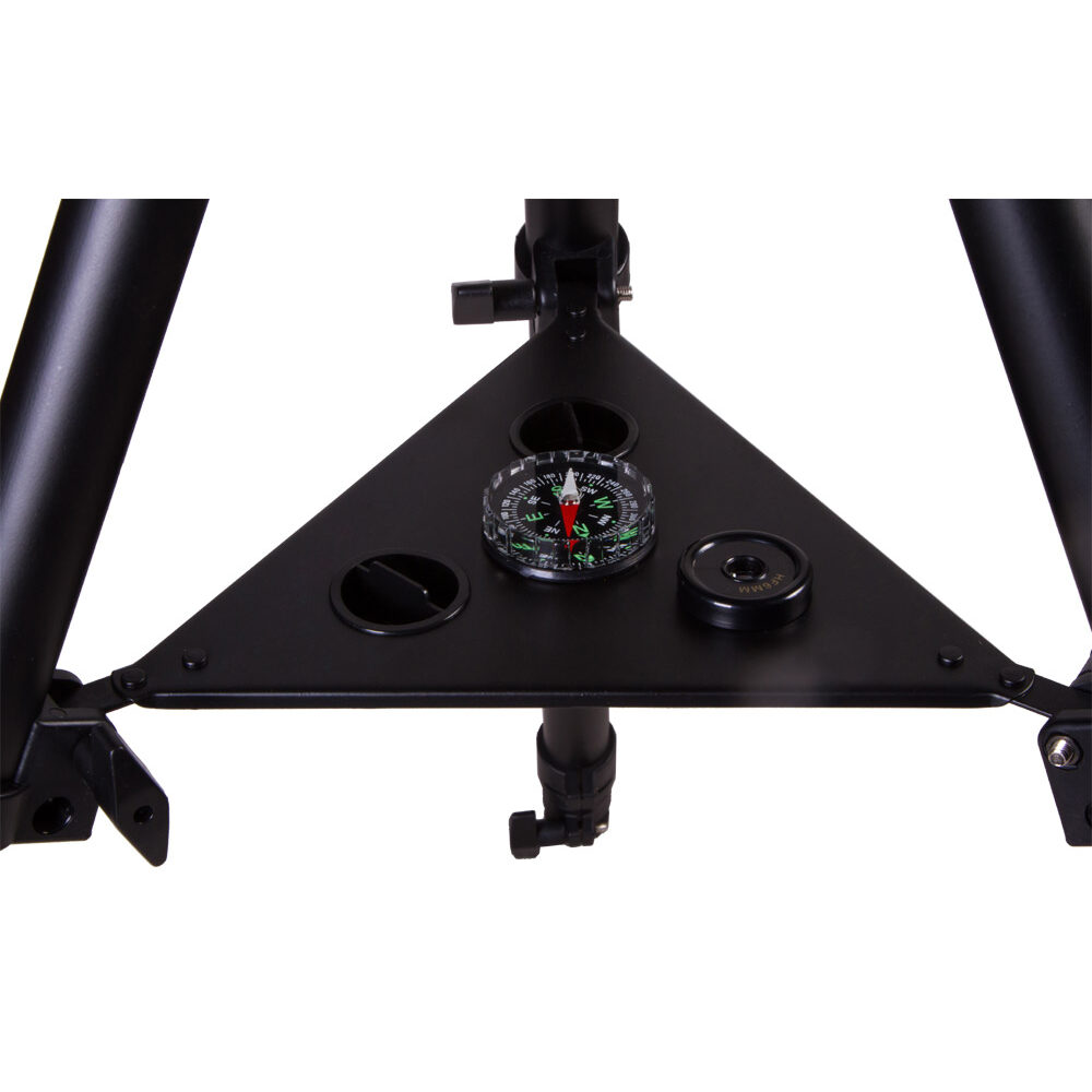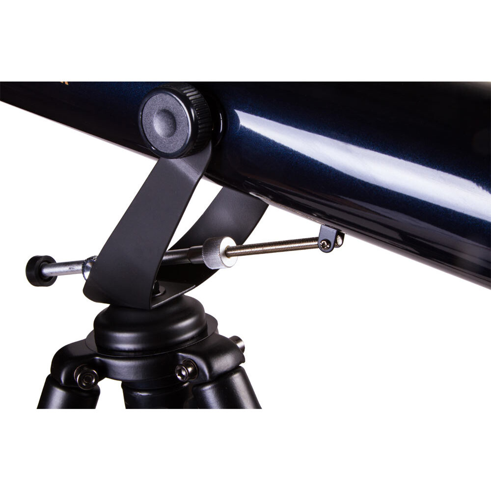 Телескоп Levenhuk Strike 80 NG подойдет для начинающих наблюдателей всех возрастов. На трубе телескопа устанавливается удобный искатель типа red dot, с использованием которого наведение на объекты не занимает много времени. В отличие от младших моделей серии, этот телескоп снабжен реечным фокусером распространенного стандарта 1,25”. Это позволяет использовать с ним большое количество дополнительных аксессуаров (в том числе и Т-адаптер для присоединения зеркального фотоаппарата). Телескоп установлен на легкой азимутальной монтировке, которая имеет мягкий и плавный ход. Для удобства ведения монтировка снабжена микрометрическим винтом по вертикальной оси. Монтировка устанавливается на двухсекционном металлическом штативе регулируемой высоты, благодаря чему до окуляра телескопа может достать даже ребенок. Штатив снабжен полочкой для принадлежностей.