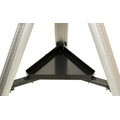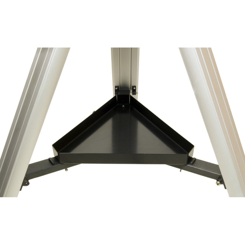 Линзовые поверхности телескопа имеют просветляющее покрытие, которое обеспечивает максимальное светопропускание, а отражающие – защитный слой, увеличивающий срок их службы. Алюминиевая труба установлена на экваториальную монтировку, оснащенную ручками тонких движений и допускающую установку электропривода на обе оси и искателя полюса (приобретаются дополнительно). Такая монтировка имеет специальные координатные круги, с помощью которых, после несложной настройки, можно находить объекты по их экваториальным небесным координатам, а также сопровождать суточное движение объекта вращением только одной ручки. Тренога регулируется по высоте и имеет удобную полочку для принадлежностей, искатель с красной точкой позволит быстро навести телескоп на нужный участок неба.
