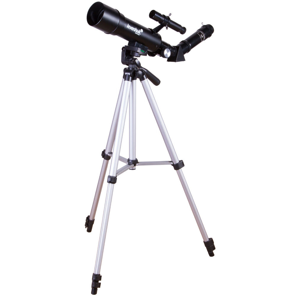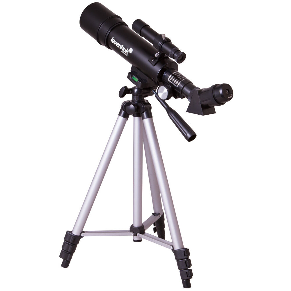 Оптическая труба Levenhuk Skyline Travel 50 в два короче, чем у большинства других рефракторов. Вес конструкции максимально снижен, при этом сохранены все оптические возможности. Поэтому этот телескоп прекрасно подходит для загородных наблюдений – путешествовать с ним сможет даже ребенок. Труба покоится на азимутальной монтировке и алюминиевой треноге. Монтировка проста в управлении, для наведения на объекты достаточно просто переместить ее по высоте и азимуту. Высота ножек треноги регулируется, что позволяет быстро адаптировать телескоп под рост наблюдателя. Levenhuk Skyline Travel 50 станет настоящей находкой для путешественника. Он легкий и компактный, а в комплект входит рюкзак для перевозки.