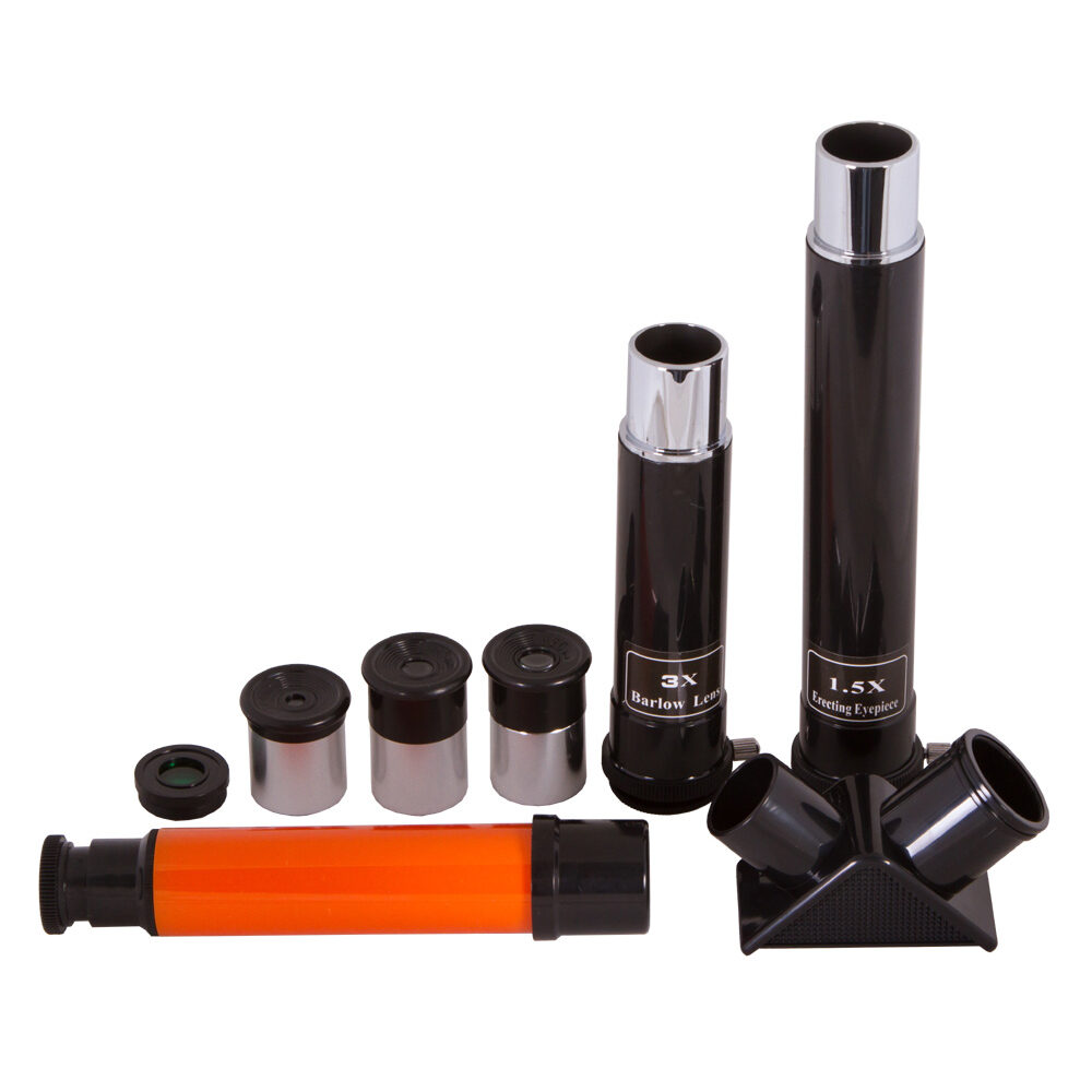 Детский телескоп Левенгук Лабз Т3 познакомит юного астронома с космосом и сможет показать ему планеты Солнечной системы, Луну и яркие объекты дальнего космоса. С помощью диагонального зеркала и оборачивающего окуляра маленький исследователь сможет переключиться на изучение наземных объектов. Оба аксессуара правильно ориентируют изображение телескопа, а оборачивающий окуляр еще и увеличивает его кратность. Линза Барлоу 3х также усиливает оптические возможности телескопа.
