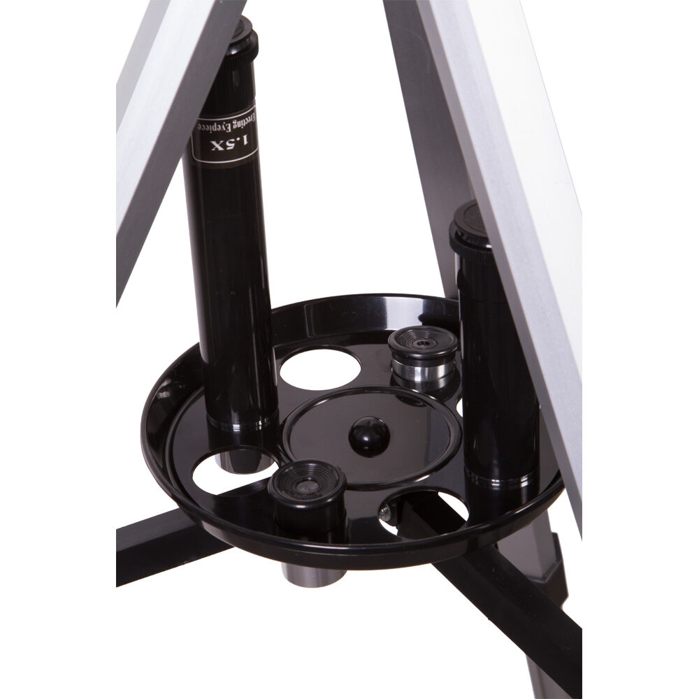 Азимутальная монтировка, на которую установлен телескоп, легка в управлении. Ребенок освоится с ней всего за несколько минут. Алюминиевая тренога устойчива и надежна, а высоту ее ножек можно регулировать. На треногу можно установить удобный лоток для аксессуаров.