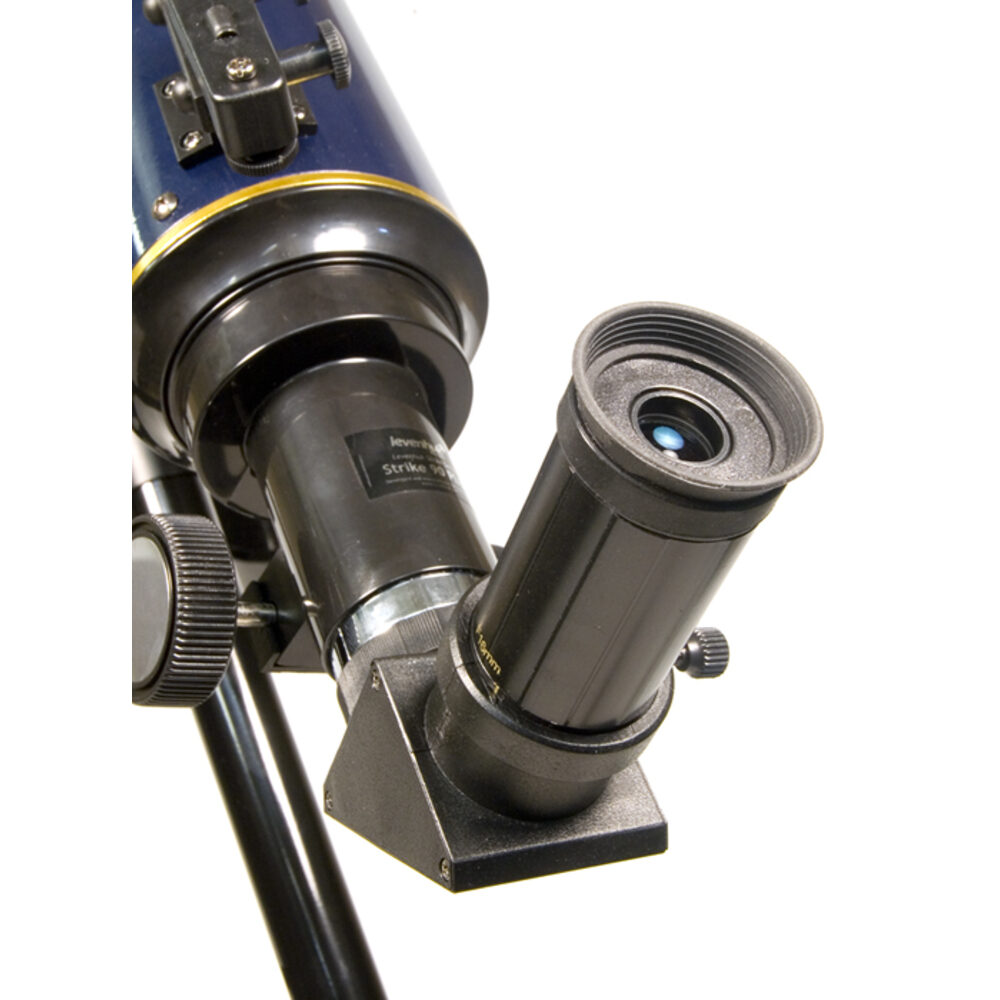 Телескоп Levenhuk Strike 90 PLUS удобен и прост в управлении и использовании. Телескоп установлен на монтировку азимутального типа. Такой тип монтировки особенно удобен для начинающих пользователей – вам не потребуется предварительная настройка перед его использованием. Монтировка установлена на прочный устойчивый штатив, изготовленный из металла. На трубе телескопа находится видоискатель с красной точкой. Это заметно упрощает поиск объектов на темном небе, ведь такой искатель использует принцип лазерной указки. С ним вы легко и быстро найдете любой необходимый объект на звездном небе.