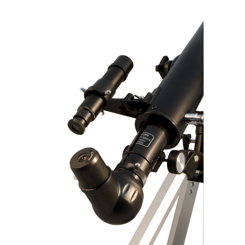 Телескоп комплектуется двумя окулярами и линзой Барлоу, позволяющей увеличить фокусное расстояние телескопа в 3 раза. Начинать наблюдение рекомендуется с окуляра 20 мм (35x), обеспечивающего хороший обзор. Короткофокусный окуляр 4 мм (175x) позволит изучить выбранный астрономический объект более детально.