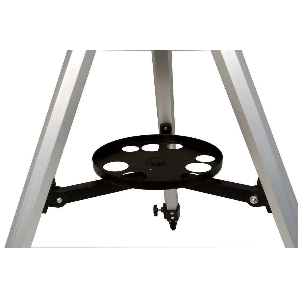 Азимутальная монтировка очень проста в управлении. Монтировки такого типа позволяют перемещать трубу телескопа по высоте и азимуту. Алюминиевая тренога обеспечивает устойчивое положение конструкции. Благодаря удобному лотку дополнительные аксессуары всегда будут под рукой.